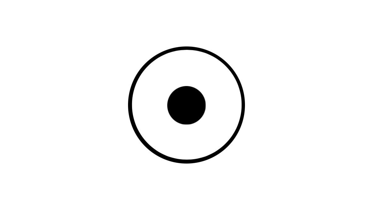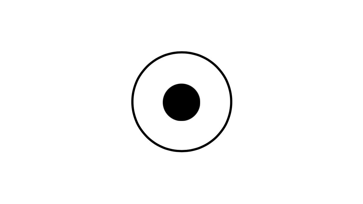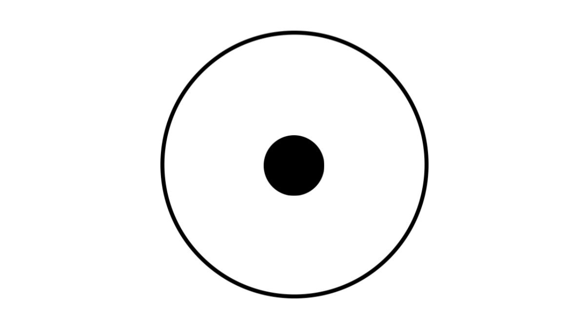 また、下の2つの図を見比べてください。黒丸のサイズは同じですが図1の方が枠が大きく、余白が多い為、黒丸がより小さく見えやすいでしょう。視覚の錯覚的な効果もあります。