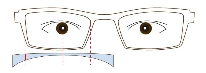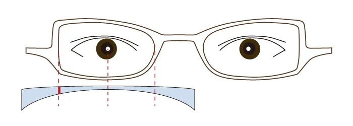 近視の方の場合、レンズは凹レンズなので、レンズの横幅が小さいと使用するレンズの面積が小さく済むのでレンズの厚みは出づらくなります。