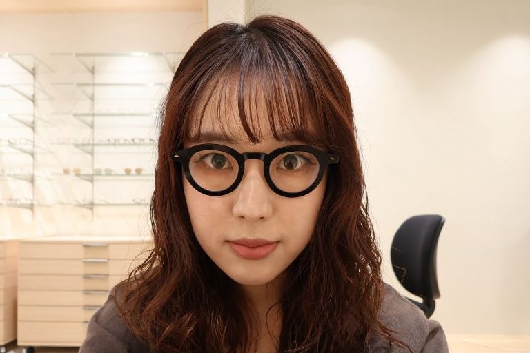 強度近視の場合、メガネを掛けた時に目が小さく見えてしまう現象は、レンズの性質上どうしても避けられないところがあります。ただ、このようレンズサイズの小さいフレームを選ぶこと、枠の太さや色で視線を分散させること、頂点間距離を含めた適切なフィッティングを行うことで、今まで感じられていた見た目のギャップは大きく変えることが可能です。
