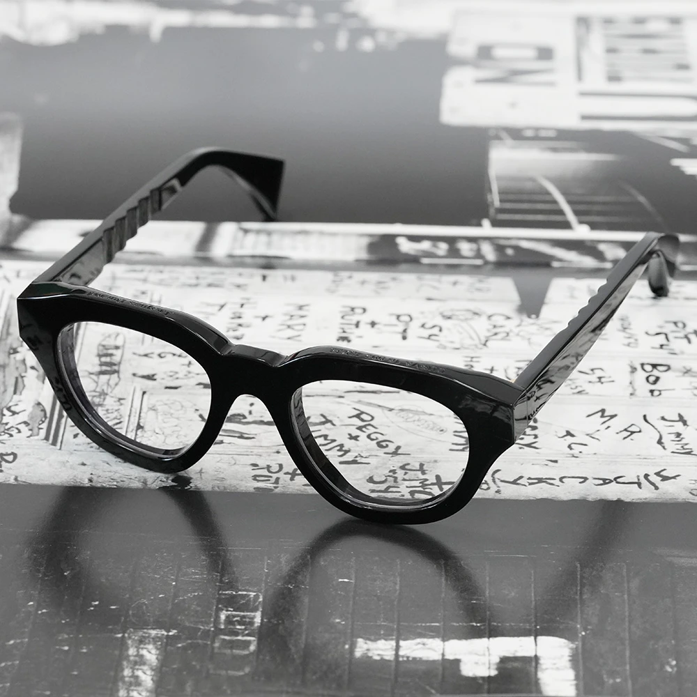 アイヴァン7285から久々に登場したリムレスフレーム。ブリッジ、テンプルなどのメタルパーツのディテールは最高峰のドレスウォッチのケース、ダイアルなどからフォルムをサンプリングしています。エッジの立った意匠を再現するために研磨の時間などを細かく計算して作製されています。クラシックなバレルシェイプ(樽型)を現代的に解釈したレンズシェイプ、オリジナルのカラーレンズを使用しています。クリアレンズに交換してメガネとしての着用も可能です。