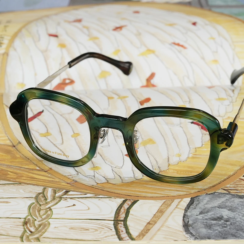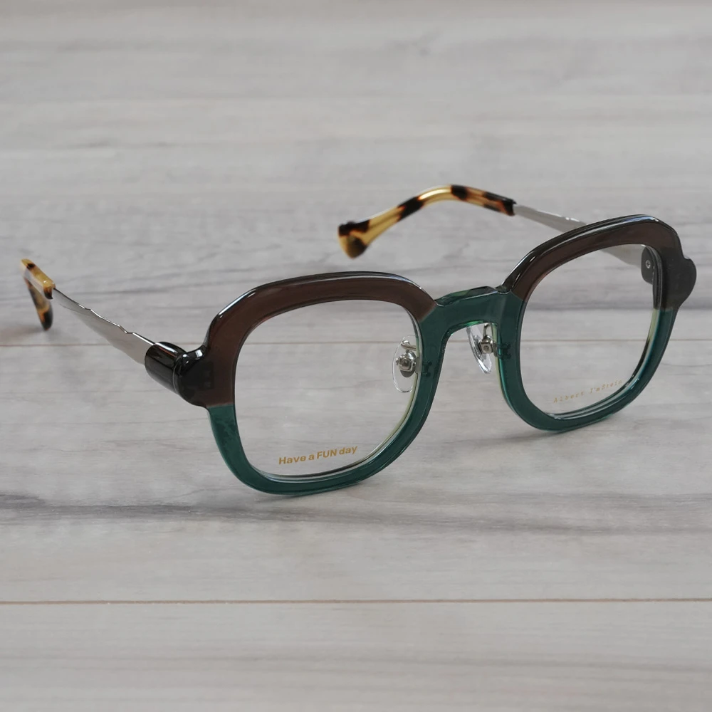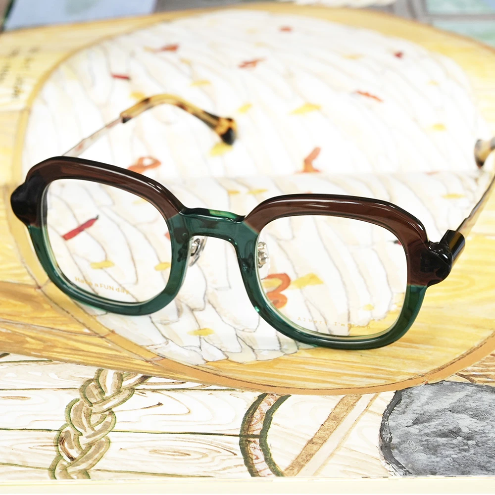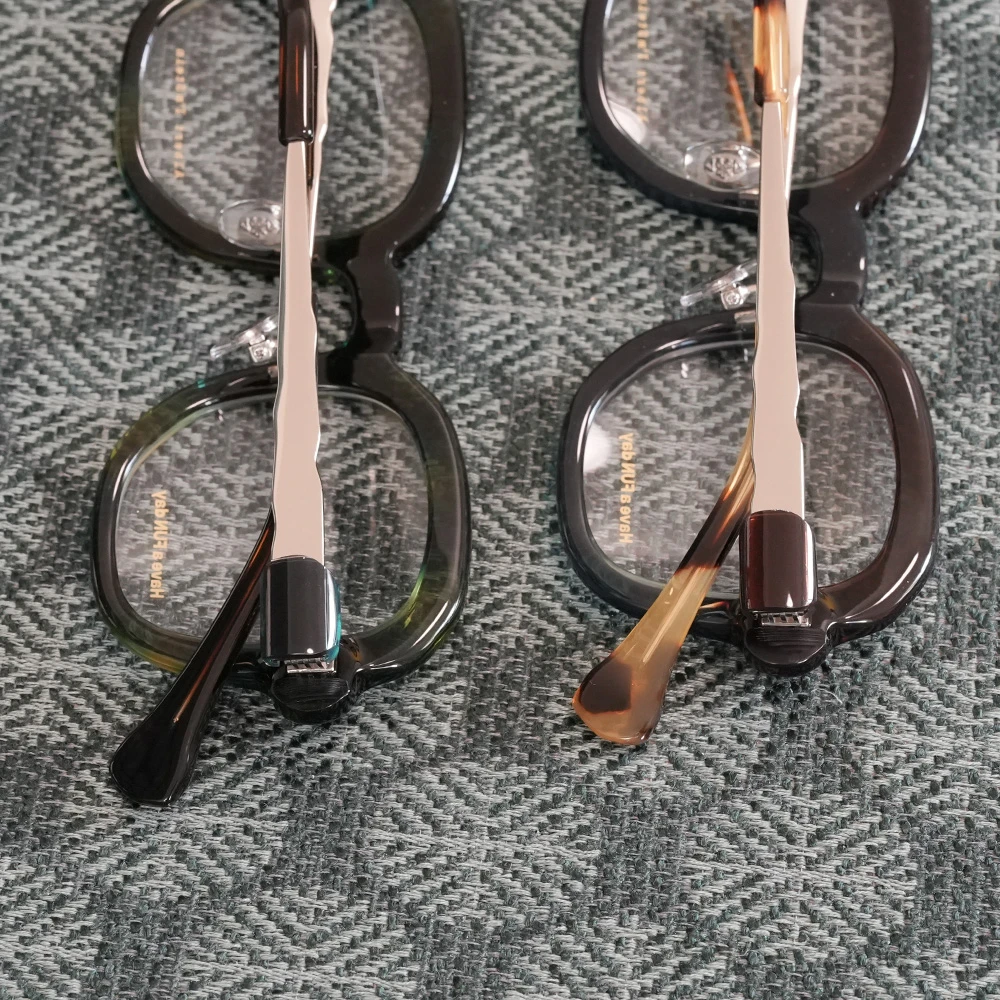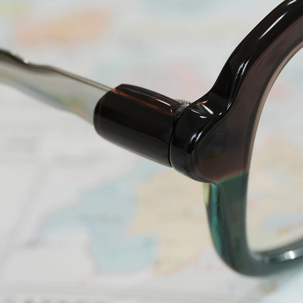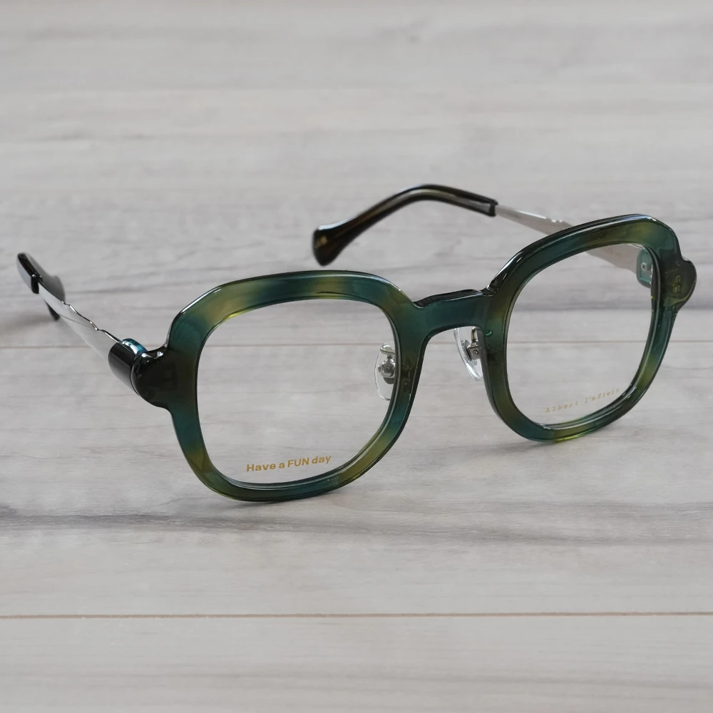 ピザで有名なイタリア南部の海岸都市ナポリ、丸く伸ばされたピザ生地のような有機的で少しいびつなフォルムな印象的な優しいスクエアシェイプ。半円形のプラスチックパーツを組み合わせた、いびつな形状のチタンテンプルも個性的。性別問わずお勧めできる魅力の詰まったメガネです。クリングスパッド付きで掛け心地も良好です。 size:レンズ横幅44mm 縦幅41mm レンズ間距離25mm フロント幅136mm