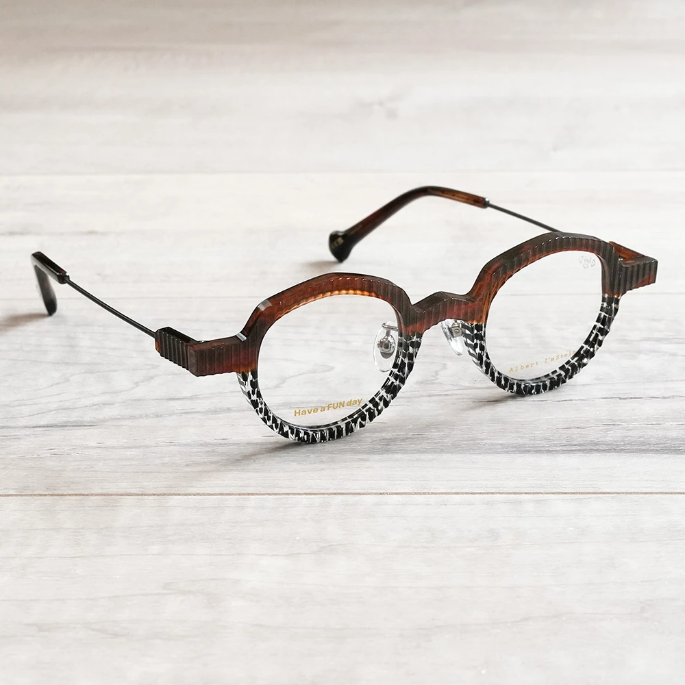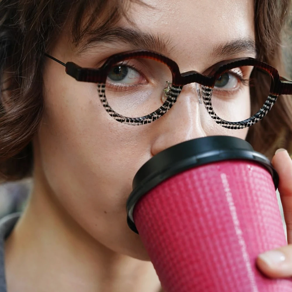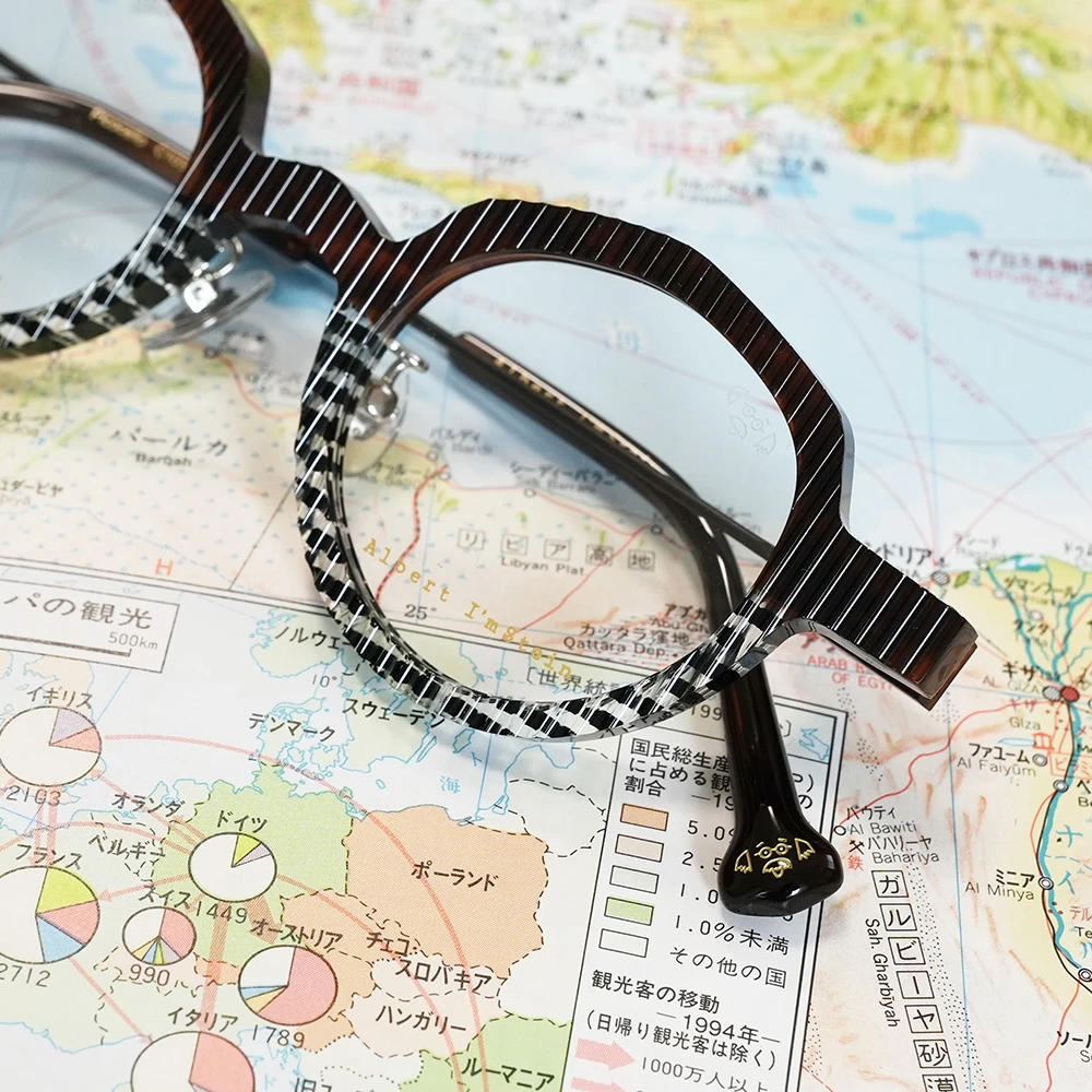 波打つフロントが特徴のカクテル用のフルートグラスから着想を得たコレクション「カクテル」の最新モデル。サイズ小さめで小顔の方や強度近視の方にお勧め、お顔馴染みの良い多角形シェイプですが、カラーと表面の波が程よく個性を発揮します。
