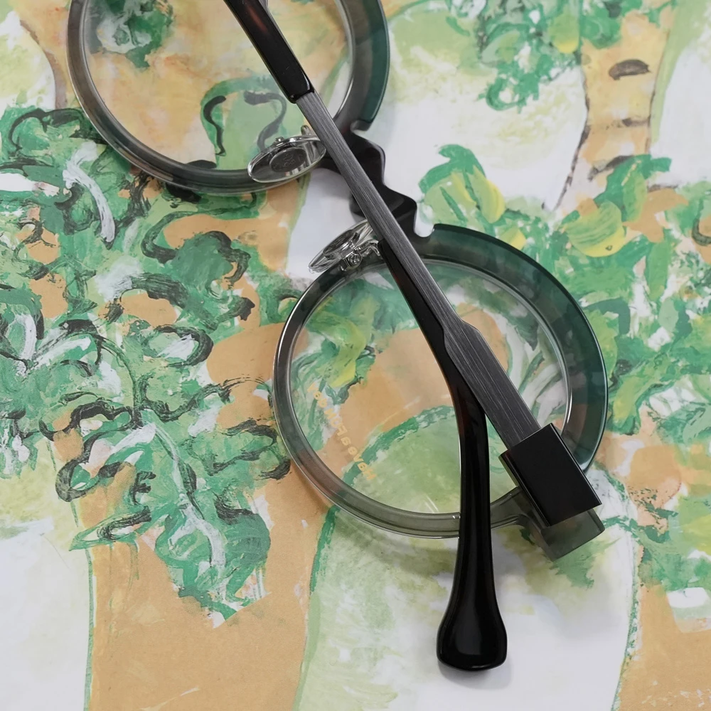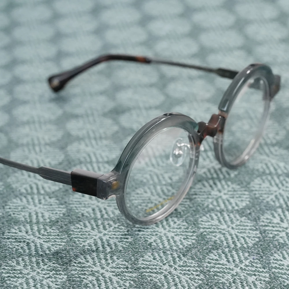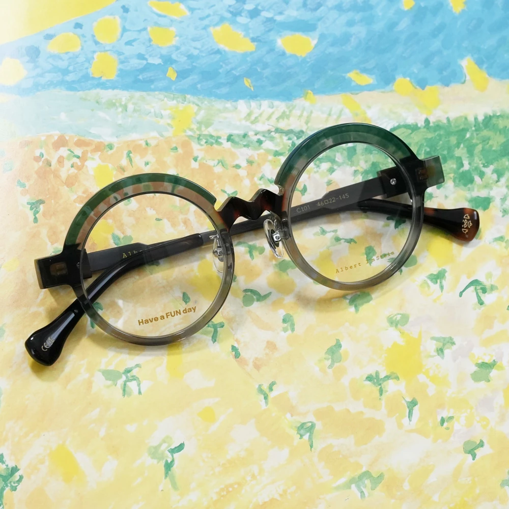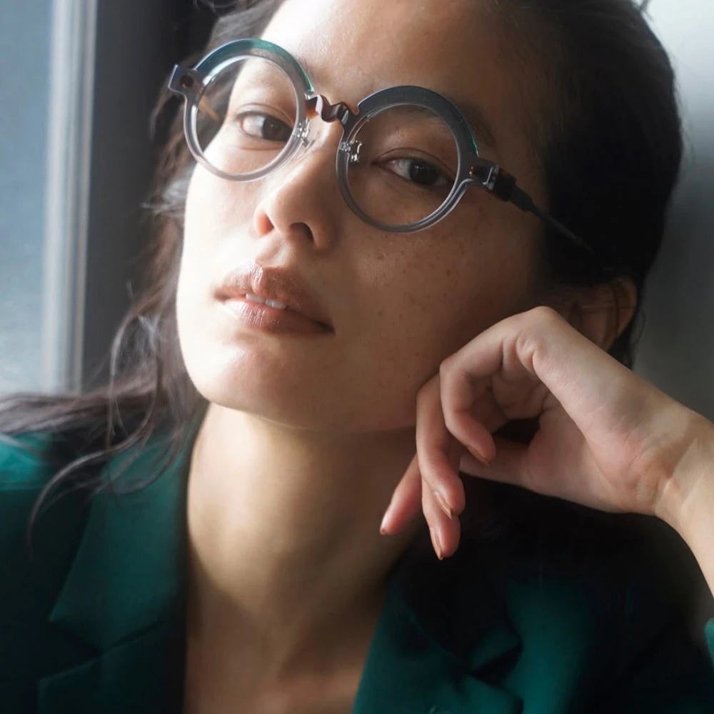 コロナ渦、「事態の収束、楽しい日常」を願ってデザインされたユニークなラウンドフレーム。ブリッジのジグザグが紆余曲折を表しているのかもしれませんが、ひたすらに前向き、皆を笑顔にするメガネは、着用してみると程良い感じの個性を発揮します。