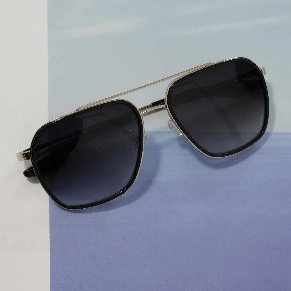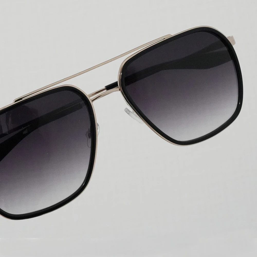 お顔の大きい方にもお勧めのラグジュアリーなダブルブリッジのスクエアサングラス。プラスチック素材のインナーリムを採用しており、素材のコントラストも美しいデザイン。チタン素材で軽量、掛け心地の良さも魅力的です。