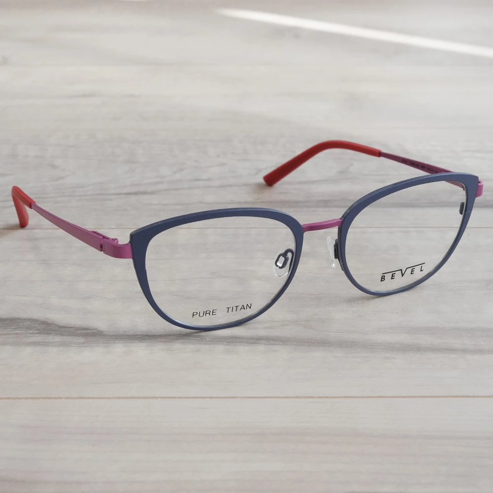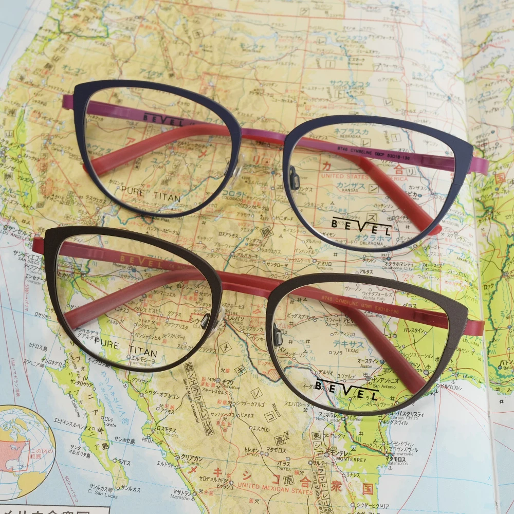 サイズ大きめのキャットアイフレーム。吊り上がりが少なく柔らかい印象、さり気ないバイカラー仕上げがオシャレなメガネです。