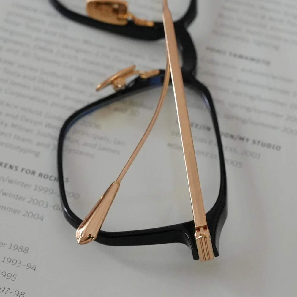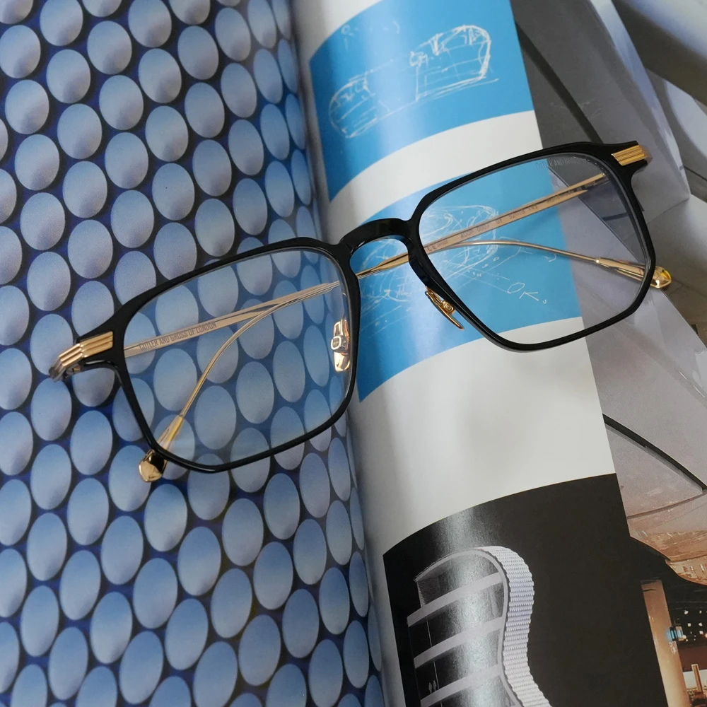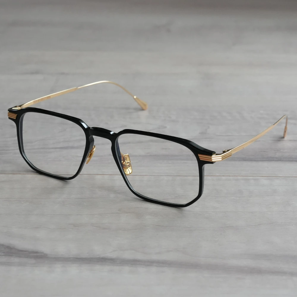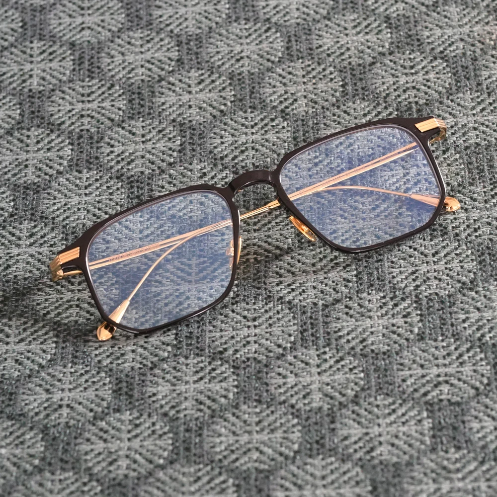 上品かつエッジの効いたスクエアシェイプ。非常にエレガントでスタイリッシュな雰囲気のメガネです。フロントも薄いアセテートプラスチックを使用し軽量に仕上げています。金属製パッド付きで掛け心地も良好です。ラグジュアリーな輝きがコンセプトの「オーラムコレクション」のアイウェアです。
