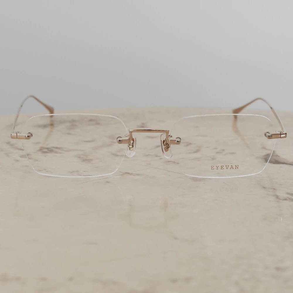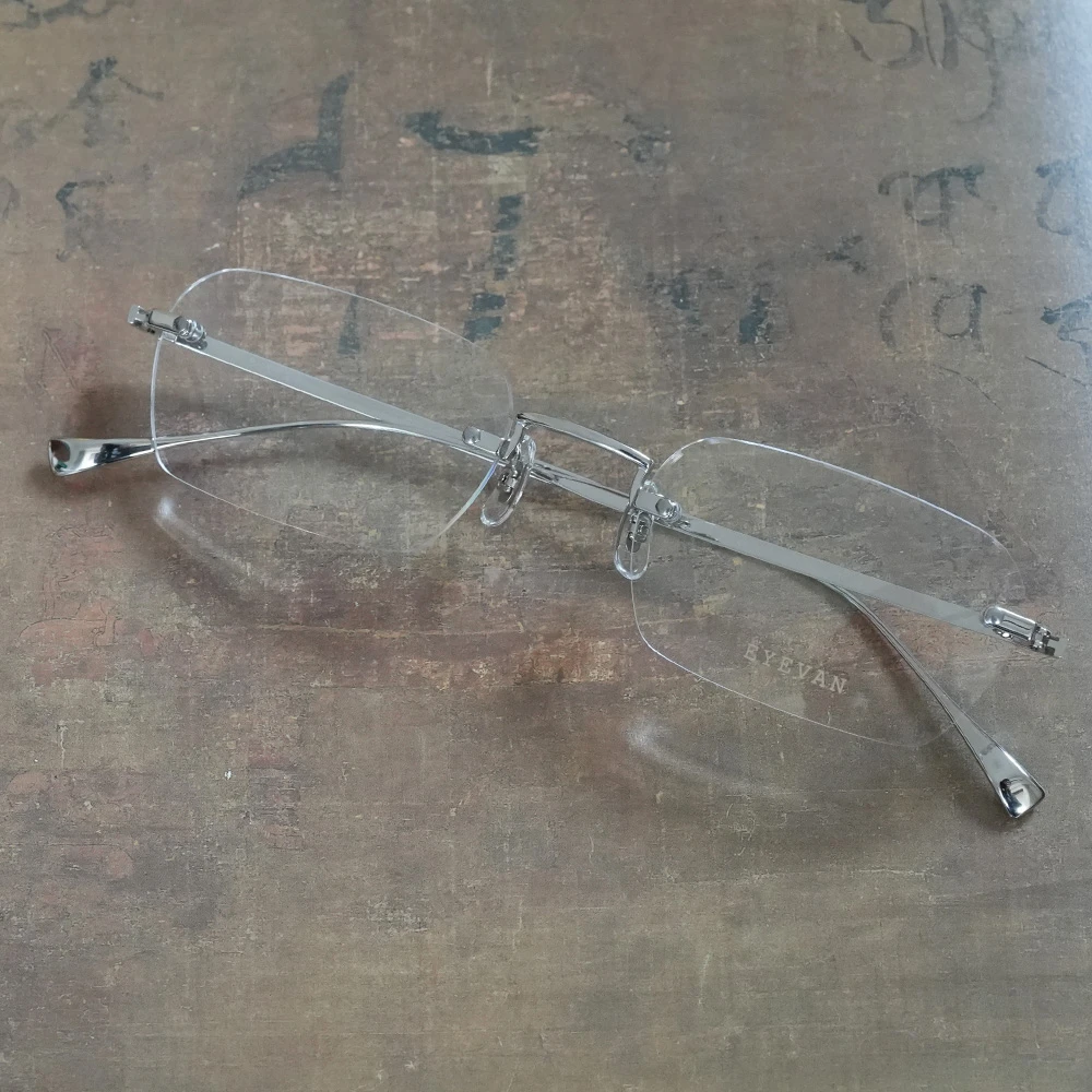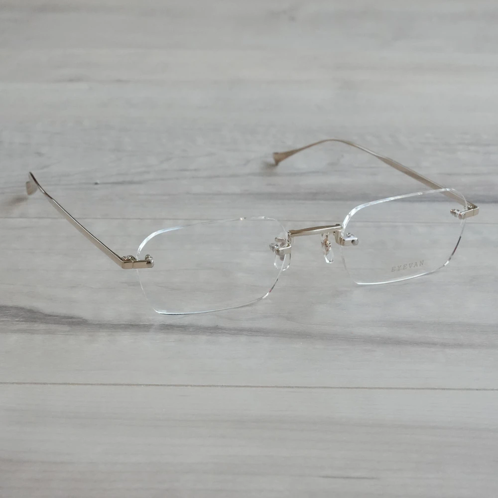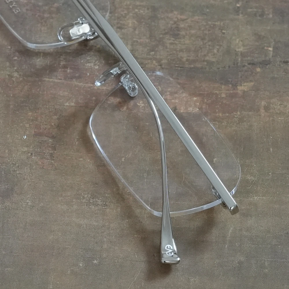 チタンブロックをプレスと複雑な削り出し によって製作した直線的なヨロイ形状がスタイリッシュなリムレスフレーム「グレイン」は、1990年代のラグジュアリーブランドのメガネからの着想。レンズシェイプは90年代のHIP HOPアーティストをイメージしたさり気ないレクタングルシェイプとなっています。すべてのパーツから装飾を排除したミニマルなデザイン、チタン素材で非常に軽量です。また、レンズサイズ、形状を変更することも可能です。