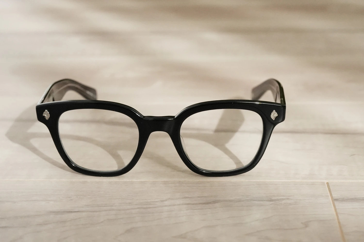 ボリューム感のあるやや吊り目のスクエアシェイプ、サイズは小さめで女性にもお勧めです。フロント両サイドのヤシの葉のメタルパーツが愛らしいアクセントとなっています。イギリスの俳優トム・ホランドが愛用しているメガネです。 size:レンズ横幅47mm 縦幅38mm レンズ間距離23mm フロント幅140mm