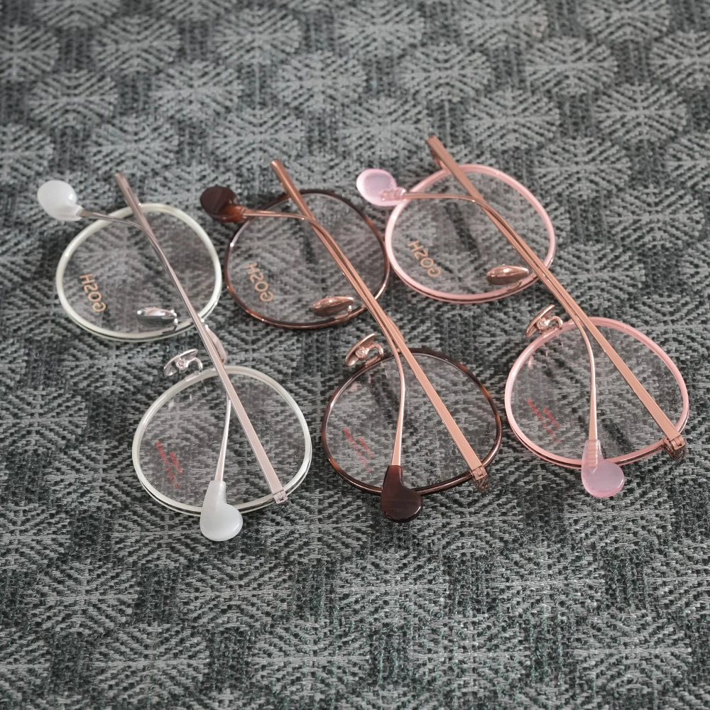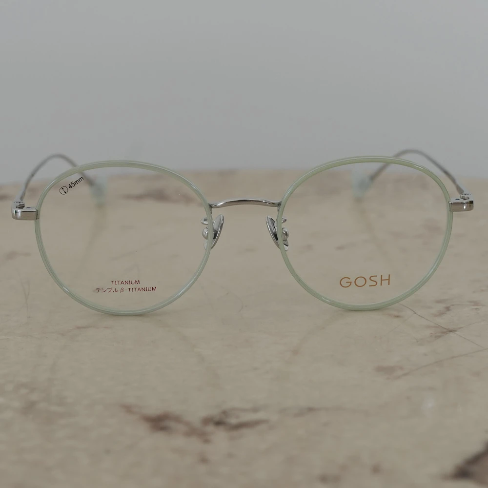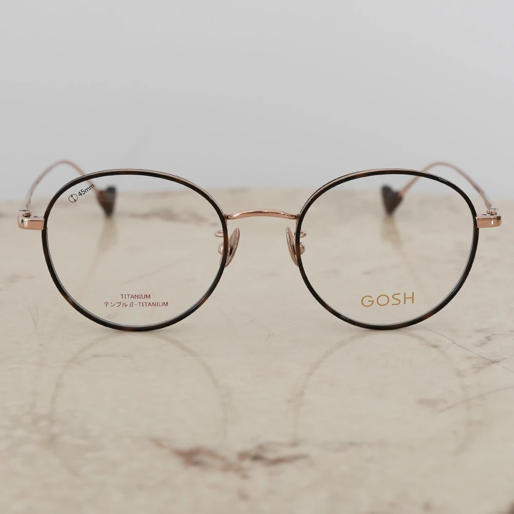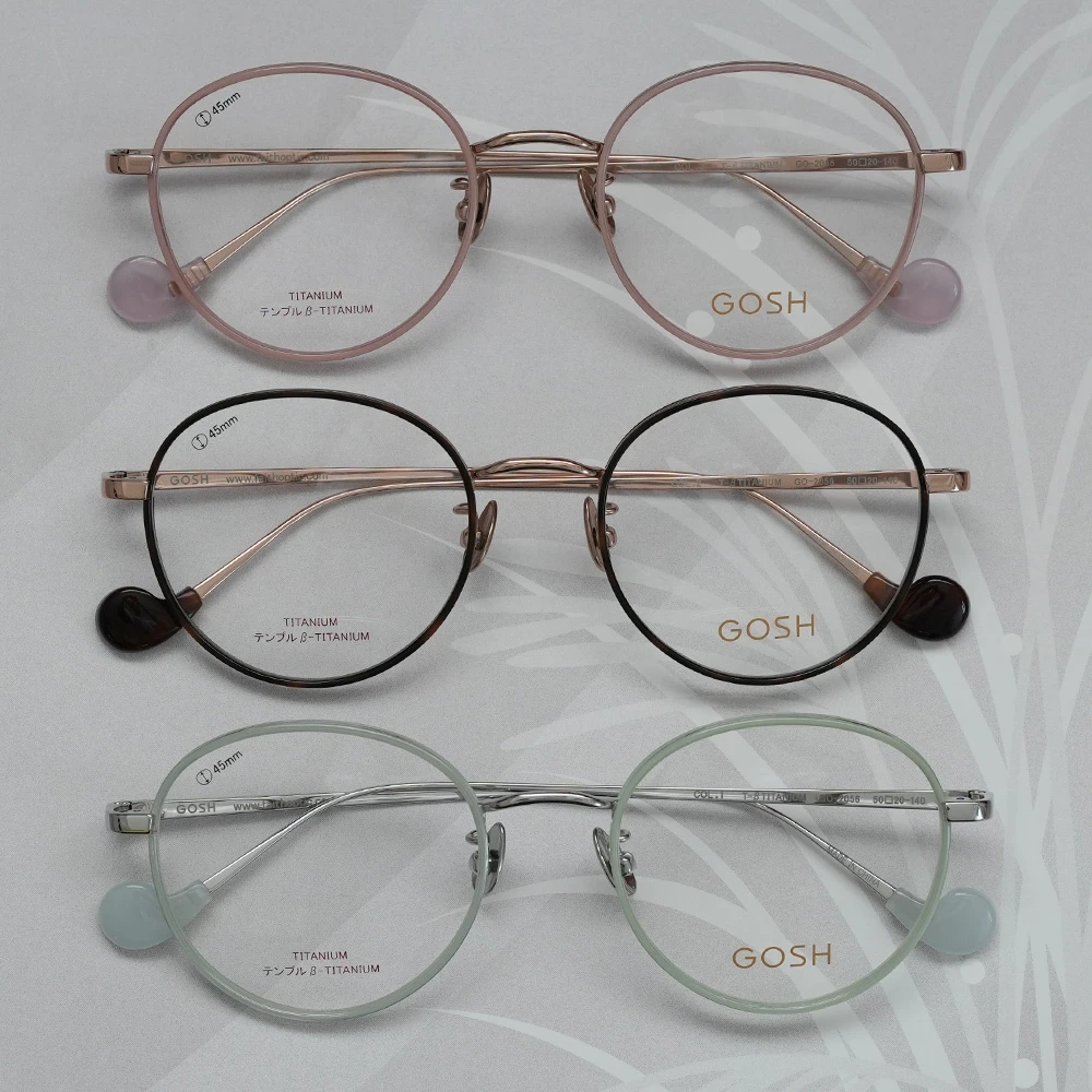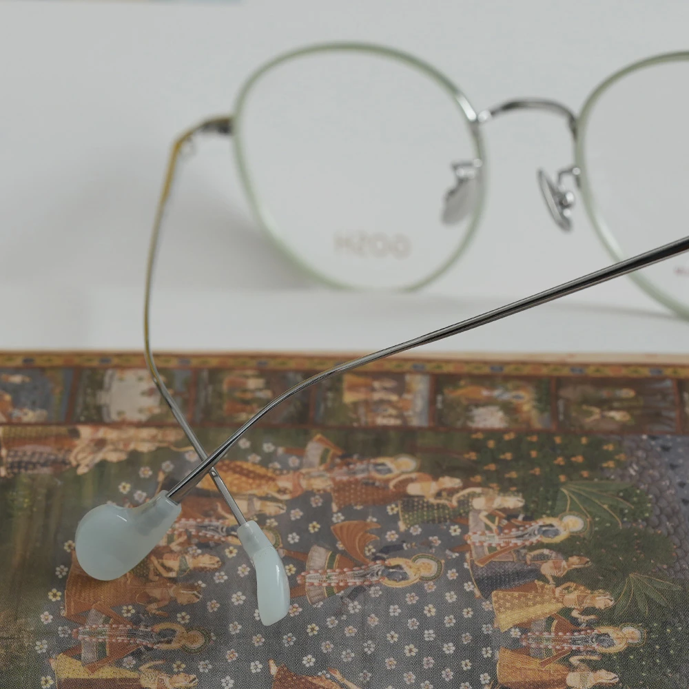 チタンリムの内側のプラスチック製のカラフルなインナーリムが楽しいビッグサイズのパントシェイプ。モダンエンドに取り付けられた靴下型のチップもアクセントとなっています。