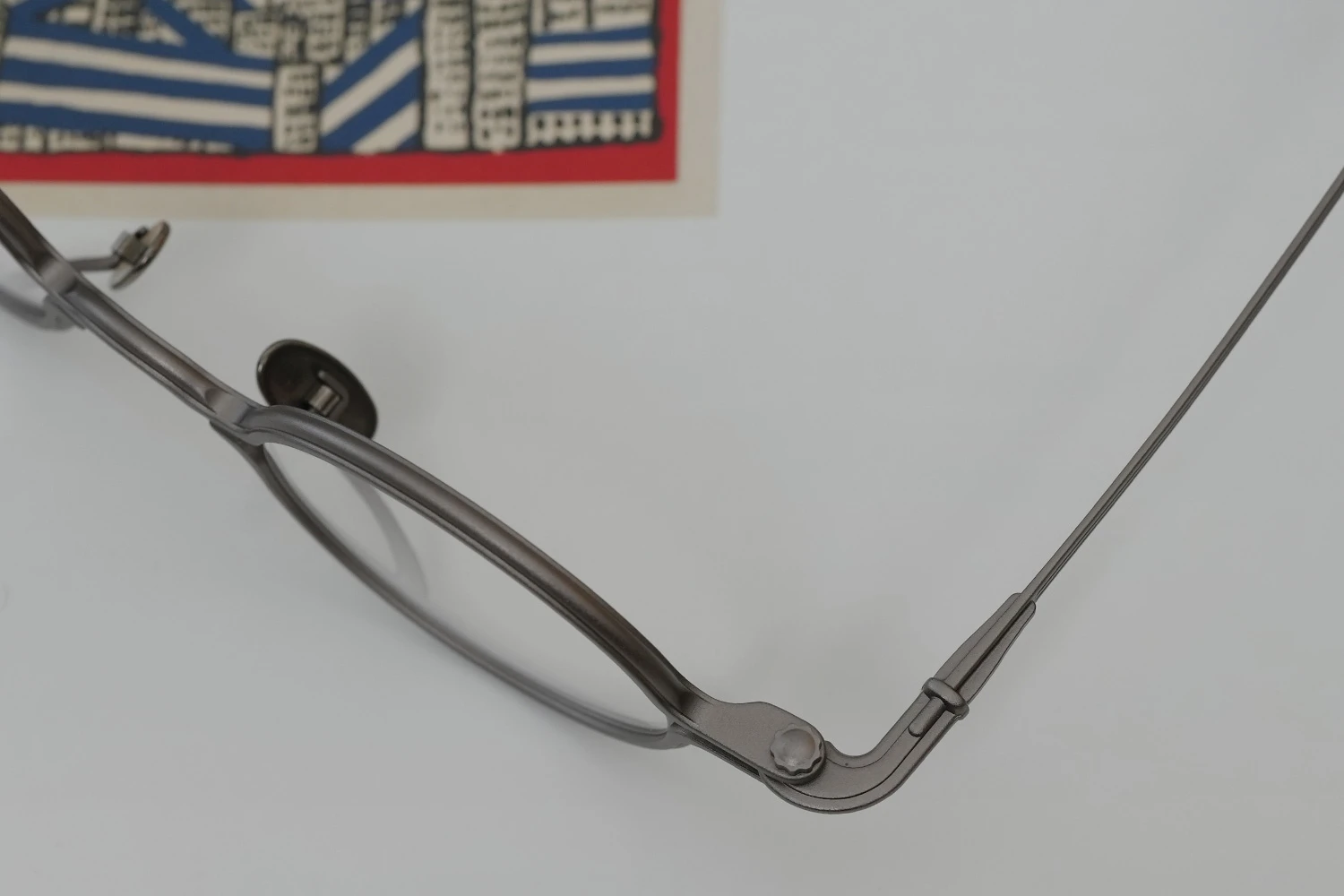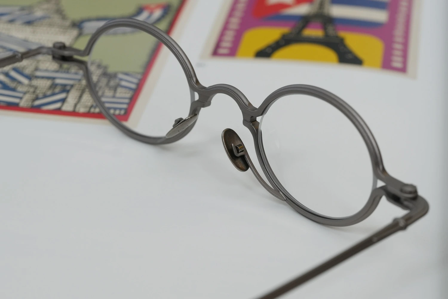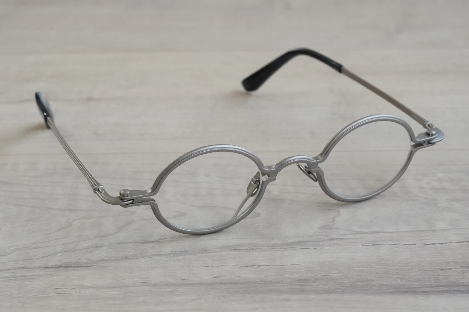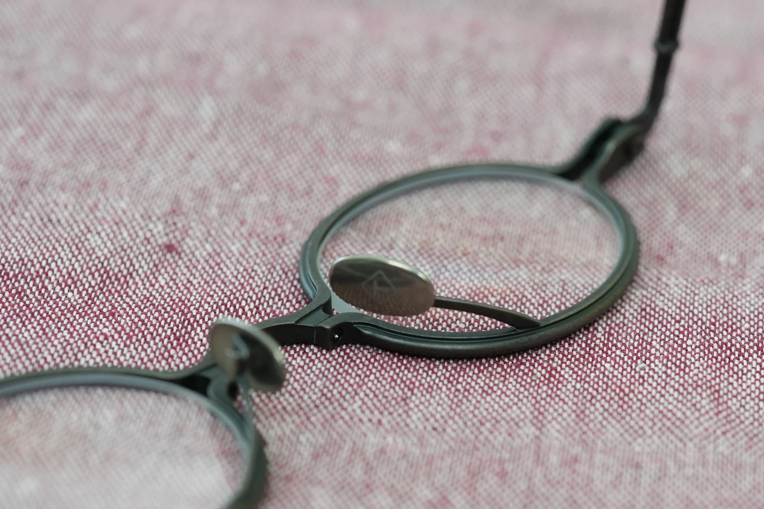 独特の構造と通常のメタルフレームにはない存在感が魅力の「SOUPCAN(スープカン)」コレクションの小さいオーバルフレーム。レンズ横幅40mmと小さいサイズですが、フレーム全体の横幅は大きく、多くの人にご好評いただいております。銅合金を使用しており、アンティーク調の力強いカラーリング、蝶番ネジに時計の竜頭を使用しているのも特徴です。フロント下方から飛び出たユニークなクリングスパッドの先端部は可動域が広く、鼻に自然に添う仕様となっています。