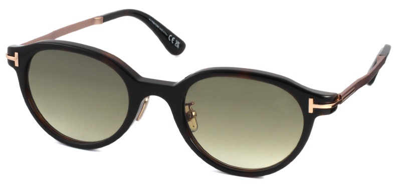 「TF6023-D-B」のサングラスバージョン。性別問わずお勧めできる柔らかいラインのクラウンパントシェイプのサングラス。段階的に広がるメタルテンプルがスタイリッシュです。金属製パッド付きで掛け心地も良好です。