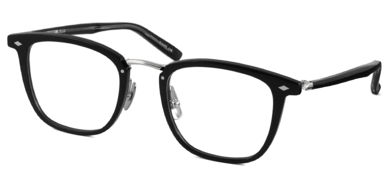 イエローズプラスの得意のクラウンパントスタイルですが、今までのものと比べると横幅大きめ。縦幅はあまり変わりませんが、やや横長に感じられます。お顔の大きい方はもちろん、ややオーバーサイズで掛けてもオシャレです。アセテートプラスチックリムの後ろにチタンバーを添わせた構造は非常に丈夫で軽量、掛け心地も非常に良いメガネです。